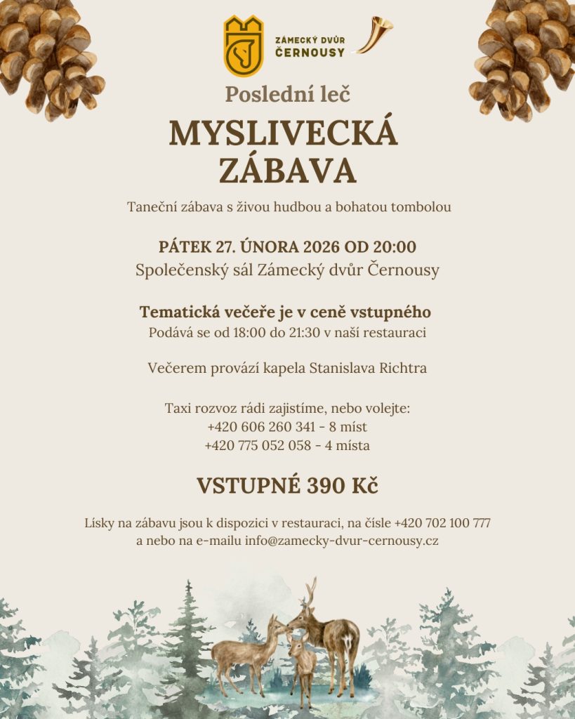Lísky na zábavu jsou k dispozici v restauraci, na čísle +420 702 100 777 a nebo na e-mailu info@zamecky-dvur-cernousy.cz